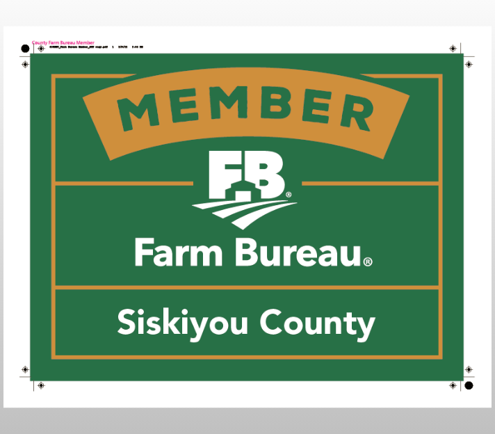 Purchase the official Siskiyou County Farm Bureau aluminum sign for your farm or business. | $25.00